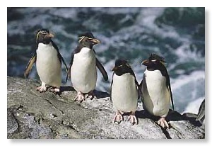 Breeding in sometimes-large colonies throughout the sub-Antarctic. Smaller than its congeners, but no less aggressive. There is some evidence that the Northern Rockhopper or Moseley’s Penguin is deserving of separate species status. Whatever, the Northern Rockhopper and Southern Rockhopper are clearly closely related and much of what applies to one probably holds for the other, but actual data are still scarce.